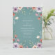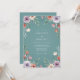 Este design apresenta um fundo turquesa suave e sereno adornado com elementos botânicos em aquarela macia. Rosas lavanda delicadas e flores de pêssego criam um arranjo romântico pela composição. Folhagens etéreas e folhas tênues adicionam um toque de elegância inspirada na natureza. A paleta combina tons de espuma do mar profundos com acentos pastéis quentes.