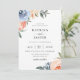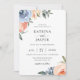 Linda aquarela, azul e pêssego, flores botânicas e folhagem, convite para casamento. O estilo e a cor da fonte podem ser personalizados. A parte traseira da placa apresenta cor azul-clara sólida.