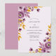 Este design apresenta uma paleta de aquarela romântica de roxo profundo, lavanda e âmbar dourado. Ranúnculos e rosas delicados estão aninhados entre folhas amarelas cintilantes, criando uma atmosfera vibrante de primavera. Os elementos botânicos fluem graciosamente pela superfície, oferecendo um visual sofisticado e polido para um evento sazonal.