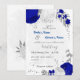 Romântica, flores reais, azuis e brancas, com o convite de casamento botânico das folhas prateadas Os detalhes da brilha são simulados. É adequado para casamento e festas de noivado.