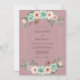 Este design apresenta um rico fundo lilás adornado com elegantes arranjos florais no topo e na base. Rosas macias em verde menta e pêssego estão aninhadas entre folhas verdes sálvia e folhagens mais profundas burgundy para um contraste romântico. O estilo botânico aquarela cria uma estética vintage e sofisticada perfeita para um evento de primavera ou outono.