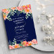 Um marinho azul e coral, cor-de-água rosa pincelada elegante convite para casamento botânico floral.Esta mão pintou o convite para o casamento floral moderno de verão é o impressão perfeito para qualquer evento de noiva e noiva. Personalize este design com suas iniciais e detalhes.