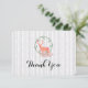 Um cartões de agradecimentos de casamento com um design de aquarela digital. Uma silhueta de renas de laranja pastel com um círculo de folhas de plantas aromáticas, cogumelos e samambaias florestais em seus pés. Mensagem nas costas com um padrão de pássaros. Personalize com sua própria mensagem e nomes.