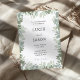 Esta bela peça de casamento combina elegância moderna com encanto rústico, apresentando trabalho de arte macio inspirado no eucalipto que captura a delicada e romântica essência da natureza. Mostrando uma variedade de matizes verdes, isso adiciona profundidade e sofisticação aos detalhes do seu casamento. Embora sofisticada, esta modelo totalmente personalizável é feita com cantos arredondados para um toque refinado, impressionando seus convidados e servindo de uma merecedora. Perfeito para jardins modernos, rústicos, ou casamentos temáticos de verde, combina perfeitamente a beleza natural com a elegância artística. Personalize com seus detalhes para criar uma peça personalizada e na moda para seu dia especial.