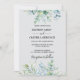 Convite de Casamento simples e elegante com belos ramos de folhas de eucalipto em aquarela & foi combinado com uma caligrafia caprichosa e uma fonte serif elegante em dourado e cinza. Para fazer alterações avançadas, por favor selecione a opção "Clique para personalizar ainda mais" em Personalizar este modelo.