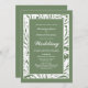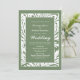 Um verde-oliva moderno com uma folha botânica branca formulou um convite de casamento com a cerimônia e os detalhes de recepção incluídos.