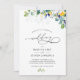 Um convite de casamento radiante e colorido com uma bela coloração aquosa, folhagem botânica verde e folhas de eucalipto. Convide seus convidados em estilo com este elegante convite de casamento amarelo floral, azul e branco. Apresentando um sofisticado design adornado com delicados floresces amarelos, florais brancos suaves e acentos azuis graciosos, este convite expele romance e charme eterno. Os refinados detalhes de tipografia e aquarela criam uma estética fresca e na moda, perfeita para dar o tom de um casamento de primavera ou verão. Ideal para comemorações de jardim, casamentos de praia, ou espaços rurais, este belamente feito convite dá uma impressionante primeira impressão de seu dia especial.