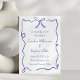 Ponha o tom para o seu dia de casamento com este convite encantador e elegante, com um arco desenhado à mão e uma fronteira balnear em azul-marinho clássico. Perfeito para casais planejando uma celebração eterno, rústica ou romântica, essa design combina a simplicidade moderna com um toque de sofisticação lúdica, ideal para casamentos de vinhedo, cerimônias de jardim ou recepções chic internas. A paleta de cores minimalista e o guião fluente fazem dela uma escolha versátil para qualquer tema de casamento, acrescentando um toque pessoal único. Disponível como um convite impresso ou um download digital conveniente, este design é perfeito para casais que querem criar uma primeira impressão memorável e convidar seus convidados com estilo e graça.