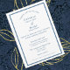 A elegância clássica do azul e do branco foi atualizada nesta versão moderna do convite de casamento que usa a abertura "Junto com suas famílias". O fundo é branco e o texto é profundo, rico e empoeirado azul no serif moderno contrastante e sans serif não-cursive fonts. Embora as fontes e a formulação sejam modernizadas, os aspectos tradicionais continuam. As palavras são soletradas - não abreviadas. Os nomes dos casais incluem primeiro, meio e último. Esta versão está completa ou pode ser abreviada para ajustado do evento. "Recepção a seguir" pode ser editada ou excluída. As informações de RSVP podem ser editadas ou excluídas se você preferir placas de gabinete. Para uma aparência acabada, uma banda dos mesmos quadros azuis ricos convida a um apelo visual adicional. A parte de trás é azul com o quadro branco. Use como está ou transforme-se em um convite para fotos adicionando uma foto do casal de noiva. Celebre suas núpcias modernas enquanto mantém toques de tradição com um convite de casamento elegante e elegante.