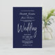 Um convite de casamento azul marinho minimalista elegante com texto branco.