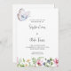 Apresentando nosso convite de casamento moderno e elegante, a maneira perfeita de convidar seus convidados para seu dia especial. Este convite foi projetado com um fundo branco e apresenta uma impressionante borboleta branca com acentos de roxo claro, azul claro e laranja no canto superior esquerdo, adicionando um toque de natureza e beleza ao seu convite. No fundo do convite, um campo de flores silvestres cria um pano de fundo pitoresco e charmoso, definindo o tom perfeito para um casamento de país, primavera ou verão. O texto está bem disposto em cinzas escuras, fornecendo um aspecto elegante e moderno que complementa a design geral. Os nomes do casal são destacados em negrito, apresentados em uma fonte moderna de escrita que adiciona um toque de sofisticação ao convite. Este convite para o casamento certamente impressionará e dará o tom para o seu grande dia, ao mesmo tempo que transmite o calor e a alegria que vem com a celebração do amor. Peça seu conjunto de nossos convites de casamento modernos hoje e se prepare para compartilhar o entusiasmo do dia de seu casamento com seus entes queridos de uma forma bela e memorável.