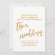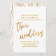 Esta distinção arrojada e simples deve-se à fonte moderna e casual escrita à mão usada para frases de sotaque e ao padrão de ondas soltas colocado sobre o fundo. As ondas evocam riachos celebratórios. Nesta peça, a letra da caligrafia foi usada para criar um gráfico com as palavras "seu casamento". Tanto o texto do cabeçalho como o padrão de fundo foram embelezados com um padrão de folha de ouro falso. Use os campos modelo para adicionar seus detalhes pessoais e fazer deste design festivo seu. O fundo branco pode ser alterado para qualquer cor que você preferir. Por favor, responda a quaisquer solicitações especiais ou personalize a assistência. 100 //