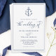 Este clássico design de convite náutico elegante apresenta um monograma de âncora no topo, com caligrafia de guião e um quadro duplo, num esquema de cores azul e branco marinho. Encontre produtos correspondentes na coleção, ou envie-me mensagem através do Zazzle Chat para mais produtos, variações de cor ou outros ajustes de design.