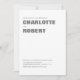 Um convite de casamento branco-na moda com texto de cinza moderno.