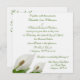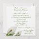 O convite para o casamento é branco e apresenta dois lírios brancos no canto inferior esquerdo da frente do convite. A bonito design de lírio calla é simples, mas elegante. O texto está na fonte de script verde e pode ser personalizado com seu próprio texto. O verso do Convite para Casamento Branco das Flores de Calla Lily tem uma grande flor de lírio calla no centro inferior e na área acima e à esquerda é um lugar para você se adaptar com os nomes dos casais de casamento na mesma fonte de roteiro verde que na frente. Cartões de resposta para casamentos brancos da Calla Lily Flower, selos postais e cartões salve a data também disponíveis!