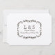 O legante e vintage filligree vitoriano deixa a borda de design com convite de casamento tipográfico e noiva doce e monograma de noivos no verso. Modelo configurado pelo Designer para que você personalize facilmente on-line. Você pode personalizar fácil e rapidamente este convite aqui e agora para ver como ele se parece com seu próprio casamento ou detalhes da festa mostrados nele. Basta digitar o exemplo nas caixas sob o título personalizar e você verá que ele muda aqui e agora, bem diante de seus olhos! Se você quiser fazer outras alterações... talvez escolha um estilo de fonte diferente, mova o texto para o ajustado, altere a cor da fonte ou adicione texto ou foto ao verso... e então pressione o botão 'personalizar', onde você será levado para a área de edição mais detalhada! Então... Se e quando estiver satisfeito com isso (e tiver verificado a ortografia duas vezes)... basta pressionar 'adicionar ao carrinho' para começar a colocar seu pedido. A qualidade de impressão do Zazzle é brilhante e você tem a escolha de atualizar para um estoque de cartão de papel de acabamento textural mais impressionante!