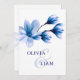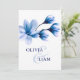 Convites Casamento Branco de Marinho Azul Floral de Aquarel