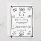 O convite de casamento branco e preto desenhado à mão. Convide seus convidados com este convite esquisito e caprichoso. Apresenta uma ilustração desenhada à mão de vários rabiscos brancos, incluindo corações, um anel e um arco. A letra escrita à mão e o quadro com corações nos cantos adicionam um toque delicioso, refletindo perfeitamente a alegria e o entusiasmo do seu dia especial e convidando seus convidados de uma forma única e peculiar. A parte traseira inclui um código QR para RSVP on-line.