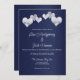 Convite para Casamento Branco do Marinho Elegante desenhado com corações brancos suaves em um fundo de cor marinho. O texto do convite inclui: Junto com suas famílias, os nomes de Cheios da noiva e do noivo, Solicite a honra de sua presença em seu casamento, a data e hora, o local e endereço do casamento, a recepção para seguir. O texto do lado inverso inclui: RSVP e os detalhes do contato. Para personalizar, basta inserir seu texto em nosso modelo fácil, substituindo o texto de exemplo.