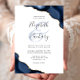 Uma marinho azul-design de aquarela agata, aparada com brilho de ouro falso, aparece em dois cantos deste design elegante. Personalize-o com os nomes dos casais em cinzas de carvão, guiando-o por um grande e azul. Adicione os detalhes do casamento em placas de cinza de carvão e fontes itálicas em um fundo branco. O verso apresenta um design azul-marinho e um agate-ouro correspondentes.