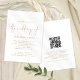 Casamento Branco Dourado do Código Qr moderno. Adicione seu código QR ao seu site de casamento no verso para que seus convidados possam RSVP e ver todos os detalhes on-line sem a necessidade de gabinetes separados. Uma tipografia informal em ouro para o título principal "Casamento de complementar o resto do texto que você pode facilmente personalizar".