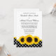 Um teste padrão de bolinhas branco e preto com girassóis amarelos. Faz um convite perfeito do casamento do verão. Personalize facilmente com seus detalhes do partido!