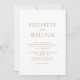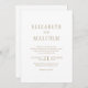 Simples Convite De Casamento Branco Elegante. Um design moderno com um sentimento clássico. Pura elegância com um texto antigo e dourado, personalizável, a branco. A linha de convite "a honra de sua presença" é perfeita para uma cerimônia que será realizada em um lugar em uma casa de culto. A honra é soletrada com um "u" à moda britânica. Para outros locais, você pode substituir este texto por "o prazer de sua empresa". Visite nossa loja, Austen & Grace, para ver a suíte de casamento de cheio, incluindo convites menos formais, produtos correspondentes e muito mais, e entre em contato conosco se precisar de assistência contact@austenandgrace.com