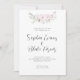 Apresentando nosso convite de casamento simples e elegante, perfeito para casais que querem dar o tom para seu dia especial com um toque de sofisticação. Este convite apresenta um fundo branco clássico com um buquê espantoso de flores cor-de-rosa pálidas e verde-claro no topo, criando um belo e eterno. O texto do convite é impresso em uma sutil cor de cinza, criando um olhar limpo e subestimado que permite que os detalhes do seu casamento brilhem. O destaque deste convite é a fonte preta elaborada de script usada para os nomes dos casais, adicionando um toque de glamour e elegância ao design geral. Este convite é perfeito para os casais que querem fazer uma declaração sem estarem muito atentos ou por cima. É versátil o suficiente para trabalhar com uma variedade de temas e estilos de casamento, do clássico ao moderno. Além disso, o material de alta qualidade e a impressão garantem que seus convidados ficarão impressionados a partir do momento em que receberem o convite pelo correio. No geral, o nosso simples convite para o casamento é uma escolha incrível que deixará uma impressão duradoura para os seus convidados e dará o tom para um belo e memorável dia de casamento.