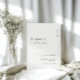 Mínimo, moderno e clássico convite de casamento preto e branco com linhas limpas, tipografia elegante e data de casamento no topo.