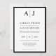 Um convite de casamento elegante e moderno apresenta um simples design de fontes preto e branco minimalista. Personalize este modelo de design com iniciais e detalhes de monograma personalizados.