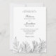 O Cartão de Convite para Casamento Mínimo e na moda apresenta uma ilustração típica da linha de palma tropical em um tema simples e elegante, preto e branco. A imagem da palma da folha carregar na parte traseira da placa. Esta papelaria de casamento está pronta para você se adaptar com os detalhes do seu dia especial. Parte de uma coleção cada vez maior.