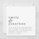Casamento Branco Negro Minimalista Contemporâneo. Simples e. Informal, seus primeiros nomes são grandes em na moda-lowercase, com os detalhes embaixo em forma quadrada, com muito espaço em branco para uma sensação contemporânea. Personalize facilmente o texto.