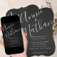 Convite De Casamento De Script De Chalkboard Elegante | Convide Moderno Mínimo Preto e Branco. Anuncie seu grande dia em estilo eterno com este convite de casamento elegante de roteiro de chalkboard. Apresentando um fundo negro minimalista com uma bela escrita manuscrita branca, este convite de casamento moderno combina encanto rústico com elegância sofisticada. Perfeito para casais que buscam um design de papelaria de casamento simples, mas na moda, este convite de casamento de chalkboard pode ser totalmente personalizado com seus detalhes. Uma escolha ideal para temas clássicos, rústicos ou negros e brancos de casamento.