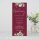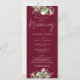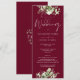 Um convite de casamento floral verde com tipografia de caligrafia elegante em um fundo vermelho burgundy. Criado por Thisisnotme©