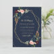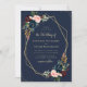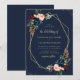 Um design Floral azul-Marinho e arrojado com um quadro geométrico dourado com texto no meio. As flores cor-de-rosa e azul-marinho são perfeitas para seus temas de verão, inverno e casamento outono. Você pode alterar o texto, o tamanho do texto, a cor e a fonte neste modelo.