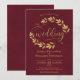 Convites Casamento Burgundy Elegante Folhas Douradas Rústic
