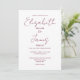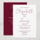 Este convite de casamento em burgundy minimalista elegante com letra script pode ser personalizado com suas informações em tipografia sofisticada com os detalhes do seu site de casamento e seu código QR no verso. Projetado por Thisisnotme©