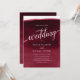 Faça uma declaração ousada com este convite de casamento burgundy moderno. Este elegante design apresenta um fundo de aquarela pintado manualmente com uma fonte formal de script e uma combinação de tipografia serif. Se precisar de ajuda para personalizar este design, entre em contato com o designer. Adoraríamos ajudar!