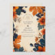 Celebre seu amor com este elegante design, inspirado em queda, que apresenta flores de laranja queimadas, folhagem de marinho e mirtilos de cor d'água. Uma mistura perfeita de encanto sazonal e sofisticação ousada, ideal para casamentos de outono com uma estética romântica e sangrenta. Totalmente editável para se adequar ao seu dia especial.