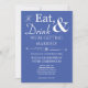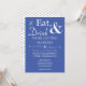 Vai ser um casamento muito divertido, então prepare o cenário com este convite de casamento Eat, Drink & Be Married! retrô e funky em azul e branco. Isso é perfeito para um casamento casual no quintal.