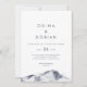 Este simples convite casual de montanha é perfeito para um casamento ao ar livre. O design moderno mínimo apresenta um marinho abstrato e uma paisagem verde azul de montanha de cor d'água.