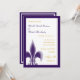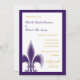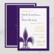 Estes Convites Casuais Fleur de Lis apresentam um solteiro Fleur de Lis no canto inferior esquerdo. Apresentado aqui em índigo e branco com indigo e letras de ouro. Preencha as informações de casamento usando o modelo ou clique em "personalizar" para fazer alterações mais abrangentes na posição do texto ou na fonte e na cor da fonte.