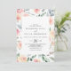 Este elegante convite para casamentos casuais florais geométricos cor-de-rosa é perfeito para um casamento moderno. A design apresenta rosas rosas desenhadas à mão e peônias com folhas verdes e cinzas, inspirando beleza natural.