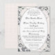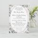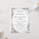 Este design incorpora a essência da elegância. Uma imagem de fundo rosa champanhe de renda delicada envolve o seu texto, que é exibido em uma fonte Nupcial prateada e circundado por uma oval prateada. O texto segue o formato tradicional católico para um convite de casamento. Todo o design é emoldurado por uma borda prateada. Ideal para um casamento tradicional.