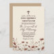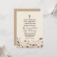 Expresse seu amor e sua fé com este belo convite de casamento católico. Apresenta um design rústico com fundo colorido creme e flores silvestres em tons de azul empoeirado, terracota, rosa poeirento e esticado. Há uma cruz ou crucifixo, e o texto convida seus convidados para uma massa nupcial unindo você e seu amado no sacramento do sagrado matrimônio. A parte de trás é um ouro de cor bronzeada com um punho das mesmas flores silvestres. Belo jeito de convidar seus amigos e família para compartilhar sua alegria em seu dia especial!