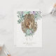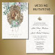 Este convite de casamento católico tradicional apresenta uma bela imagem da Bem-Aventurada Virgem Maria e São José enquanto são casados. Isto está em um fundo de renda vintage branca acentuado com flores verdes menta e lavanda. Todo o texto e fontes podem ser modificados. Nossa coleção também tem itens de casamento coordenados com este design.