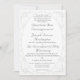 Design apresenta um plano de fundo maravilhoso da imagem de um local branco. Uma delicada prata floresce, melhora cada esquina. O formato adequado para um convite de casamento católico tradicional é exibido em uma elegante fonte nupcial e bordado por um oval de cor prateada. O reverso apresenta o mesmo fundo para o monograma da noiva e do noivo e um símbolo elegante de cruz e anéis. design de excelente para o tema clássico da noiva "Old Money". Projetado para coordenar com a Vintage White Lace Católica Wedding Suite.