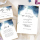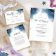 Aprecie seus convidados com este belo convite celestial de casamento com delicadas manchas de aquarela e estrelas delicadas mostrando seus detalhes de casamento em uma bela mistura de azul, marinho, turquesa, chalé, roxo, magenta, fuchsia e matizes de ouro. Detalhes da caligrafia escrita à mão. Estilo de redação moderno e simples. Volta elegante com manchas de aquarelas celestiais atraentes e iniciais de casais. Parte da nossa coleção "Mystic Garden Celestial" com uma variedade de produtos de coordenação disponíveis.