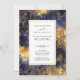 Uma noite estrelada cósmica celestial e convite para o casamento de planetas. Encantando e etéreo em ouro e azuis profundos.