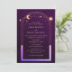 Astronomia Cósmica Espacial Galáxia Celestial Arco-Íris Profundo Plum Sun Star Astronomy A Astronomia Cósmica A Invisição Espacial apresenta sol, lua e estrelas com um quadro colorido de arco-íris pastel em um fundo profundo de ameixa. Dentro é a sua informação de convite de casamento. Personalize editando o texto nas caixas de texto. Projetado para você por ©Evco Studio www.zazzle.com/store/evcostudio